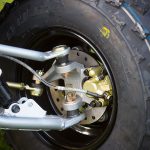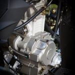 Die „Hauptattraktion“ der Aeon Supercross 400 EFI, die wir ausprobieren konnten, ist aber das neue Hinterachsdifferential. Die neuen EU-Fahrzeugklassen schreibt in der Klasse L7e-A1 (hierbei wird die Cobra 400 EFI nur mit 14,5 kw/ 19,7 PS sttt der maximal möglichen 30 PS zugelassen) u.a. ein offenes Differential an der Hinterachse vor. Aeon kommt der Zulassungsvoraussetzung nach und verbaut dabei ein sehr cleveres wie zugleich simples Differentialsystem – und das gibt es momentan nur bei Aeon. Es sperrt über Riemenscheiben selbstständig bis zu 50% bei Kurvenfahrt oder im Gelände wenn ein Rad beginnt durchzudrehen. Eine Art Visco-Kupplung.