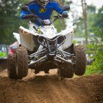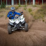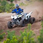 Doch wie fährt sich die Supercross mit dem offenen Differential im Gelände? Und besonders bei den sandigen Bedingungen vor Ort? Also raus auf die Piste. Schon auf den ersten Metern fühlt man sich auf der Aeon wohl. Die schmale und nicht zu weich gepolsterte Sitzbank lässt viel sportliches Feeling für das Quad zu. Den Lenker sollte man in seiner Neigung der persönlichen Komfortzone anpassen. Uns saß er zu weit nach vorne gesetzt. Die Beschleunigung liegt oberhalb dessen, was man bei der Motorgröße und Leistung erwarten kann. Spritzig und agil sind wir unterwegs, das Quad reagiert über die knackig eingestellte CVT-Variomatik auf jeden Gasbefehl.